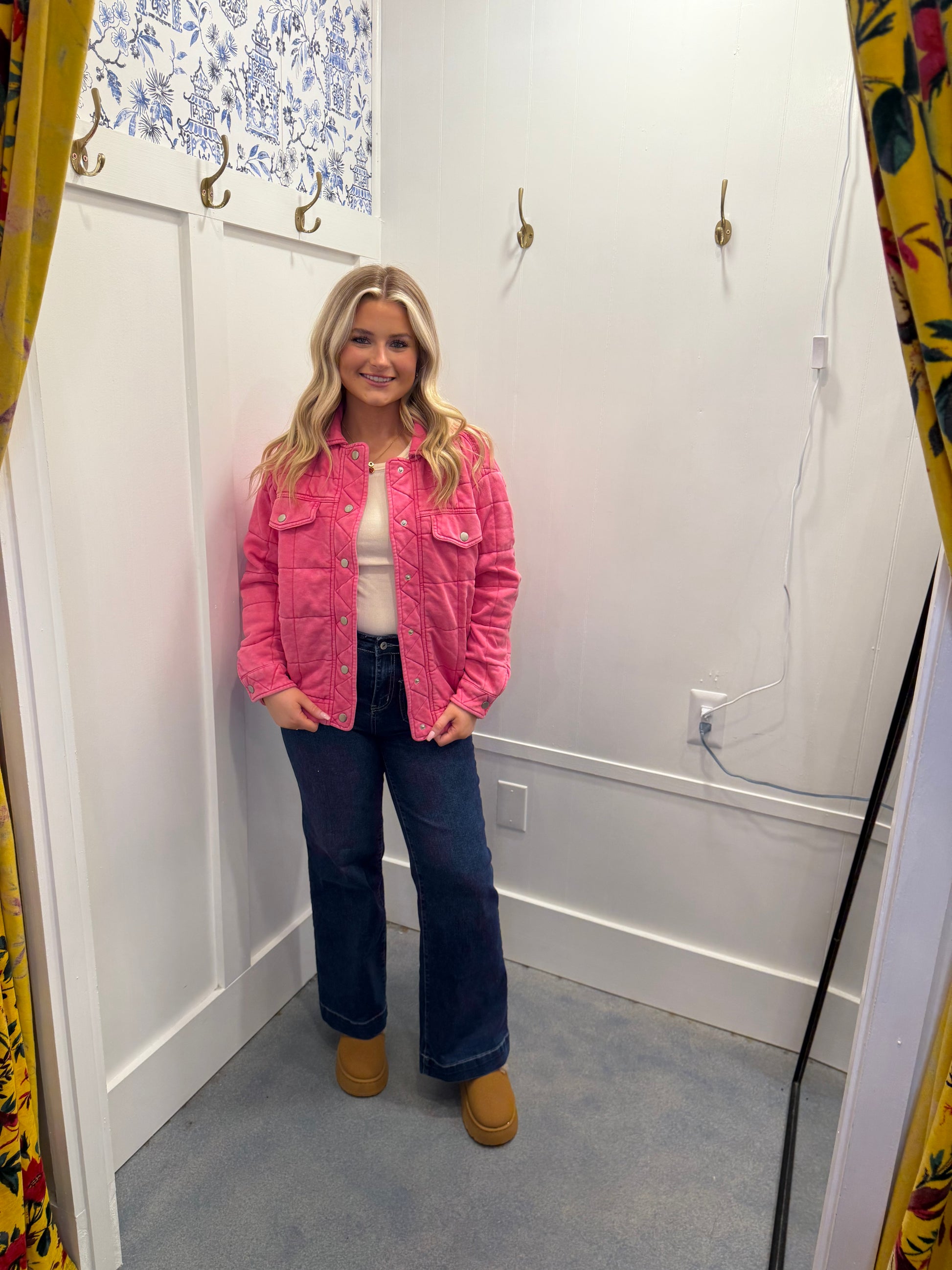 Garment Stone Washed Quilted Pocket Front Oversize Jacket