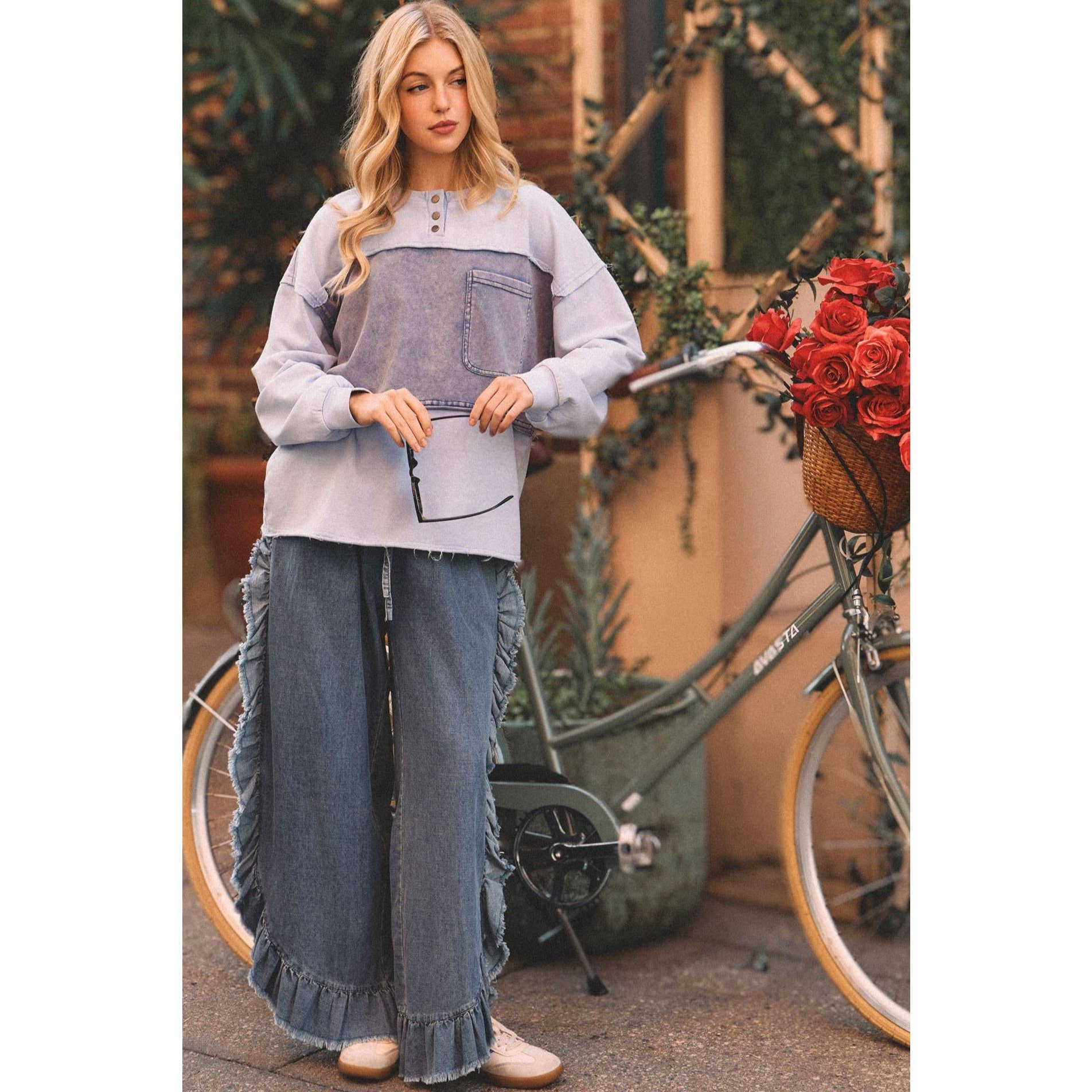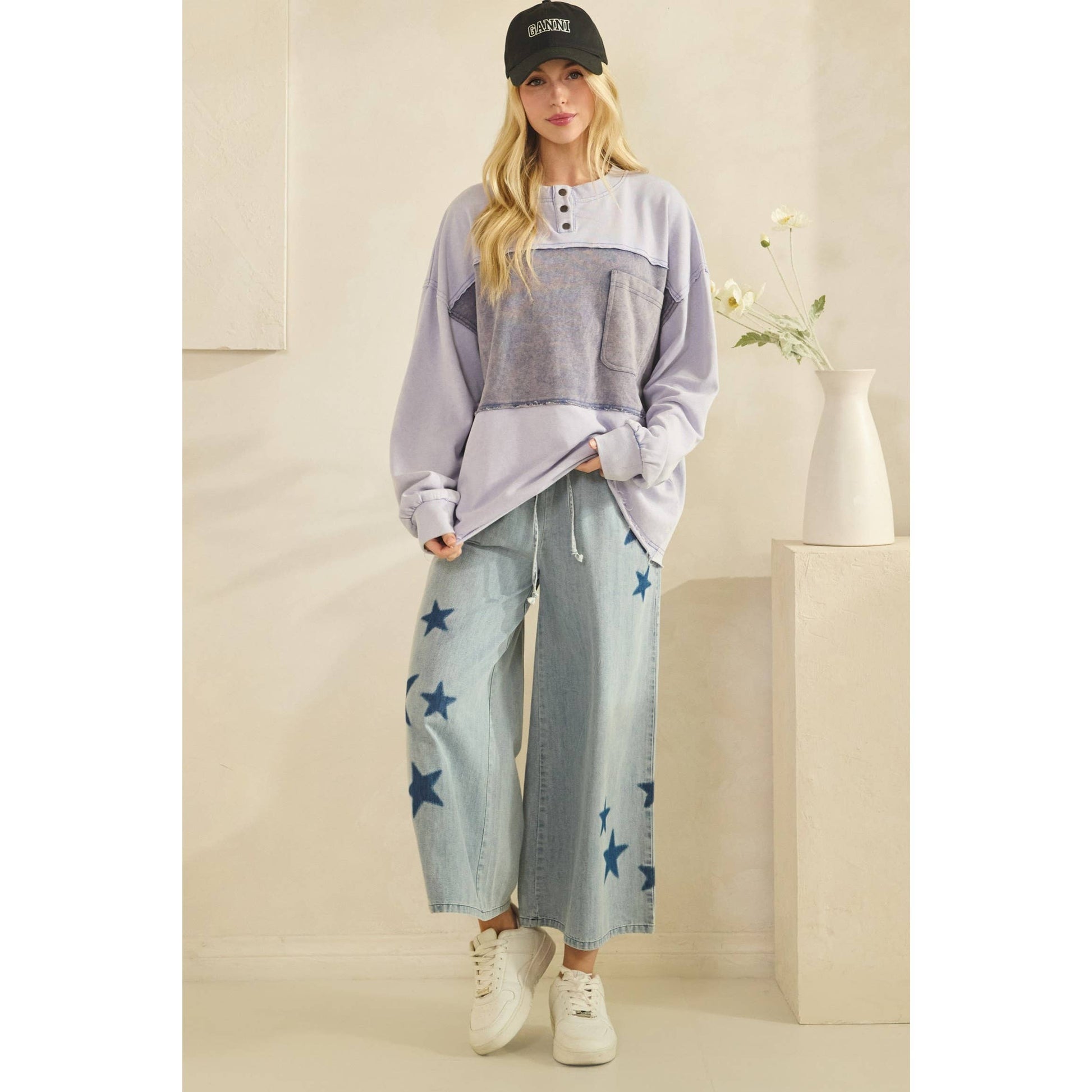 DENIM CONTRAST POCKET PULLOVER