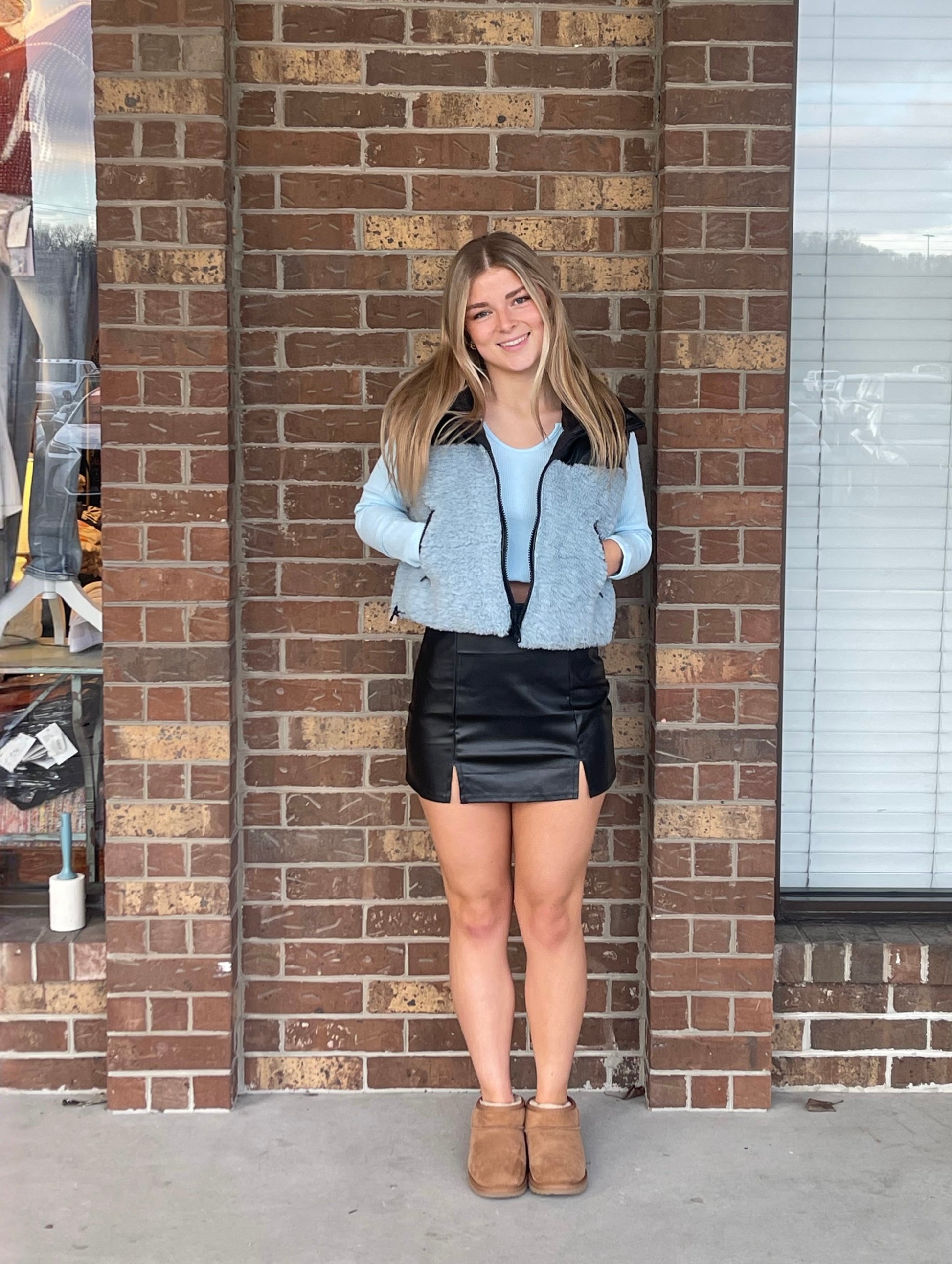 Faux Leather High Waist Double Slit Mini Skirt - High wasit - Double silits - Mini length - Bodycon pencil fit - Faux leather - 50% Polyurethane 50% Polyester