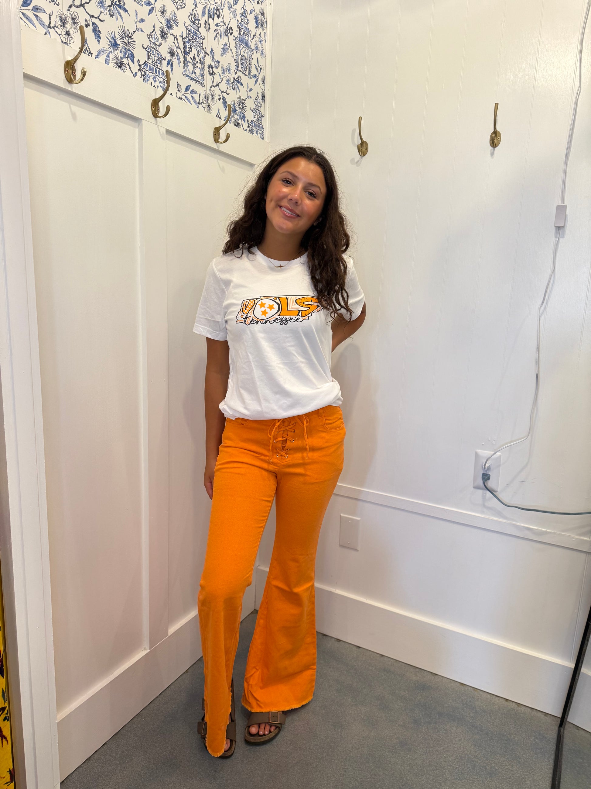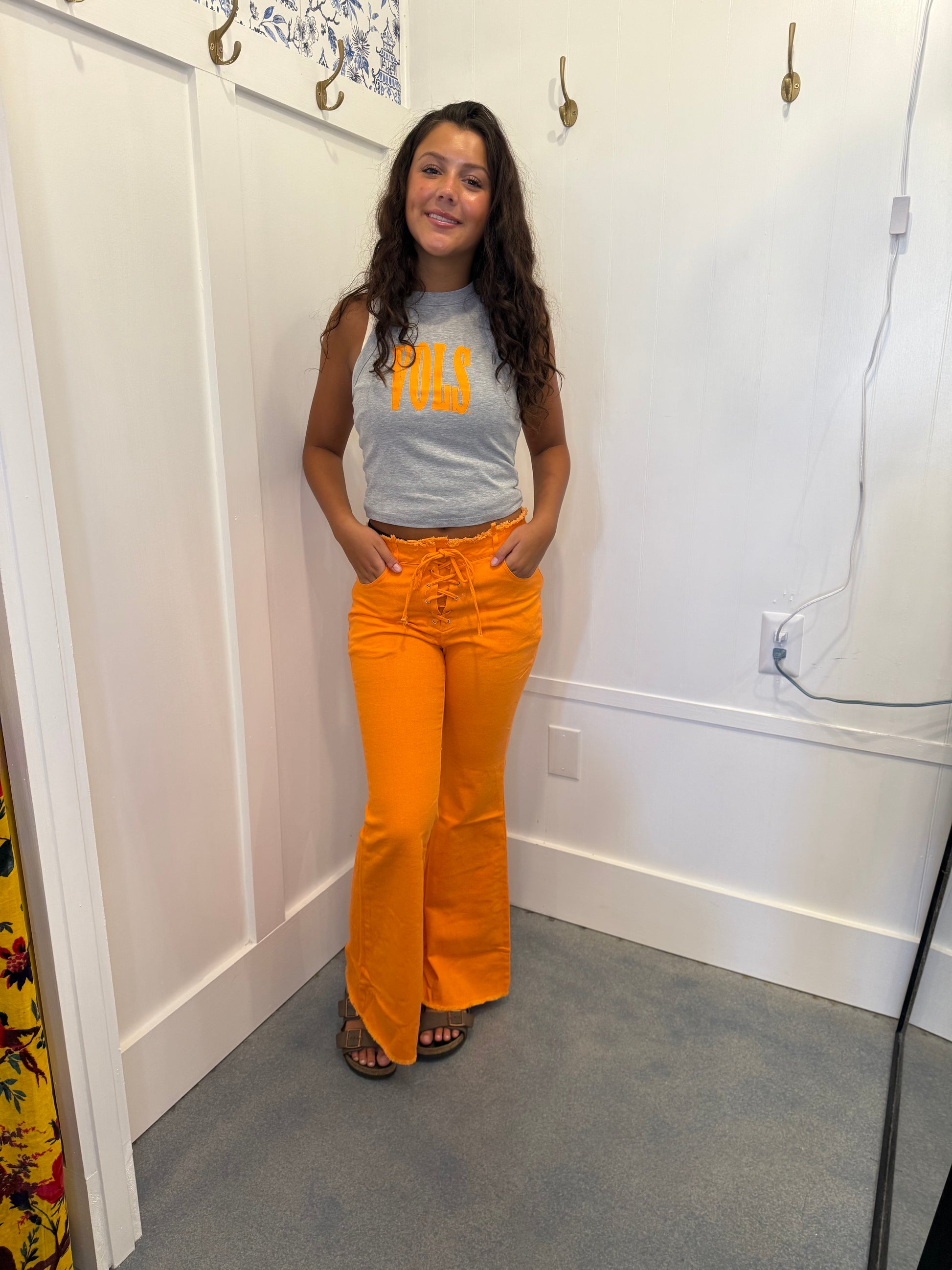 High waist lace up front flare leg jeans