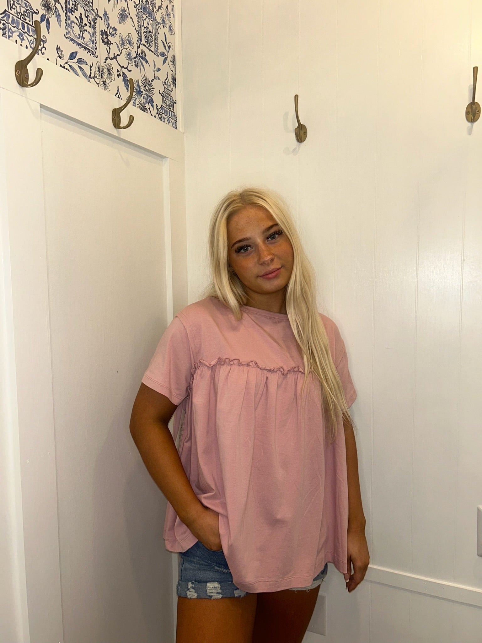 Ruffled Trim Loose Babydoll Tee
