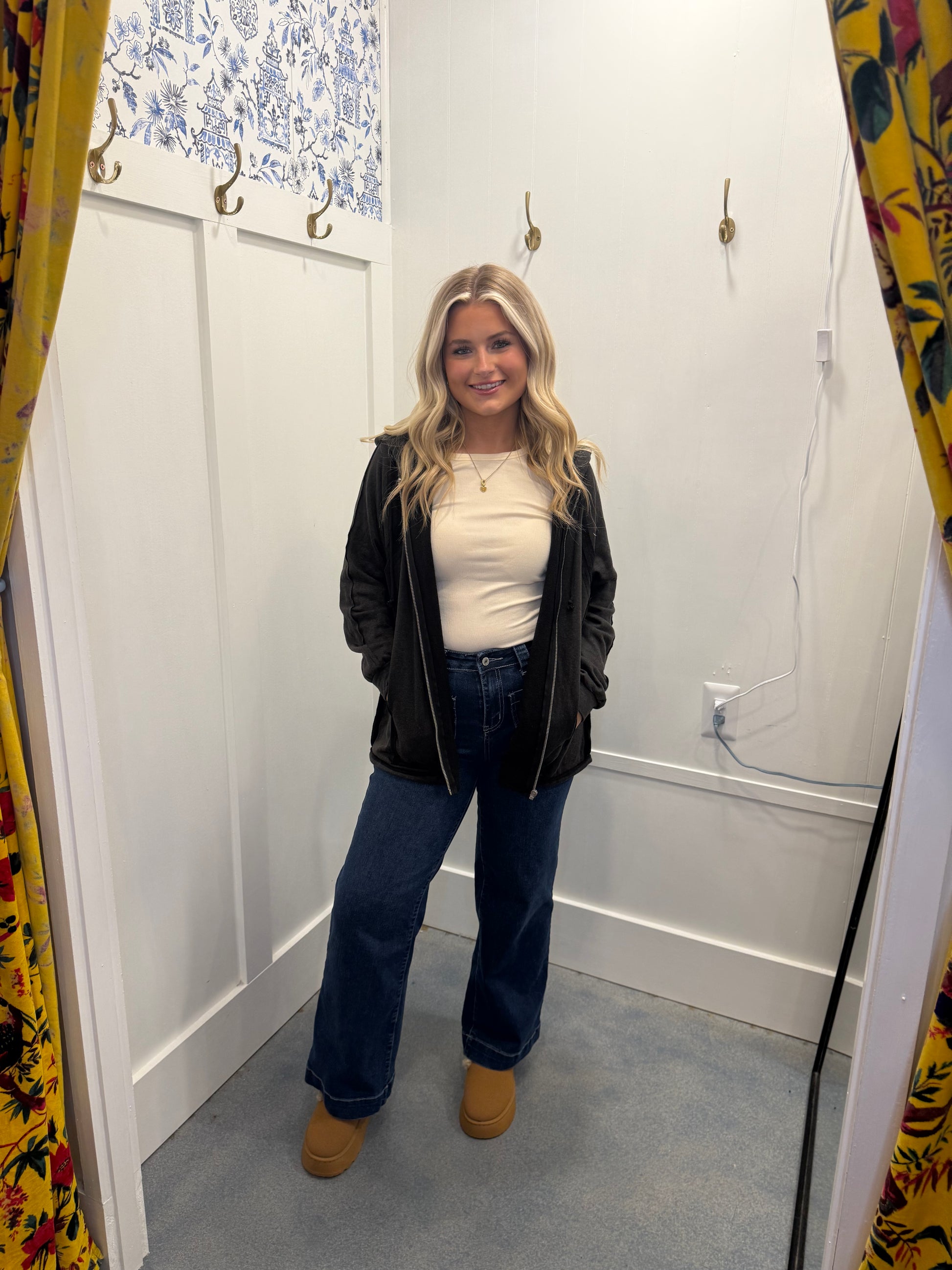 Solid Color Oversized Zip Up Hoodie with Pockets