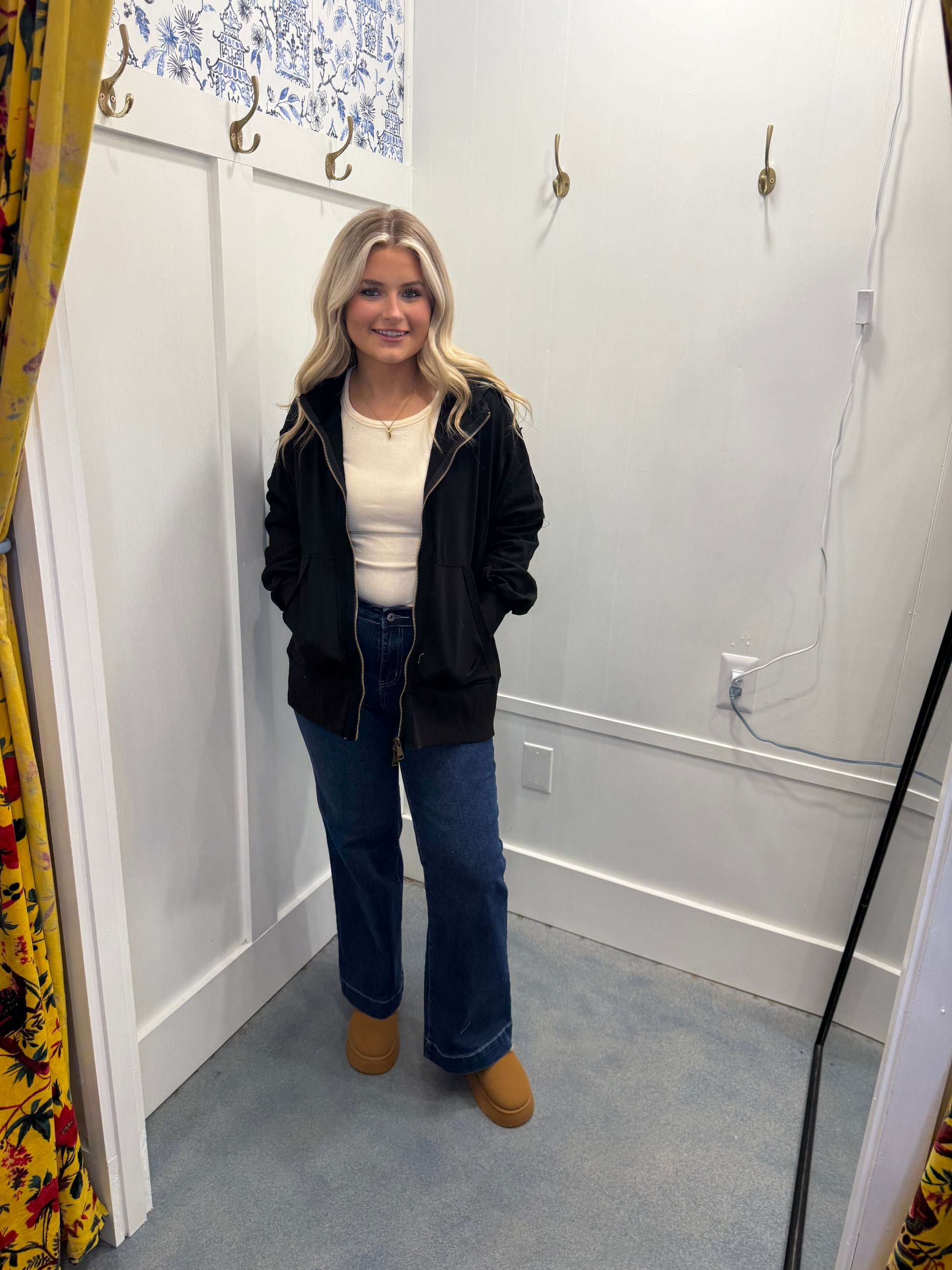 Raw Edge Exposed Seam Full Zip Hoodie