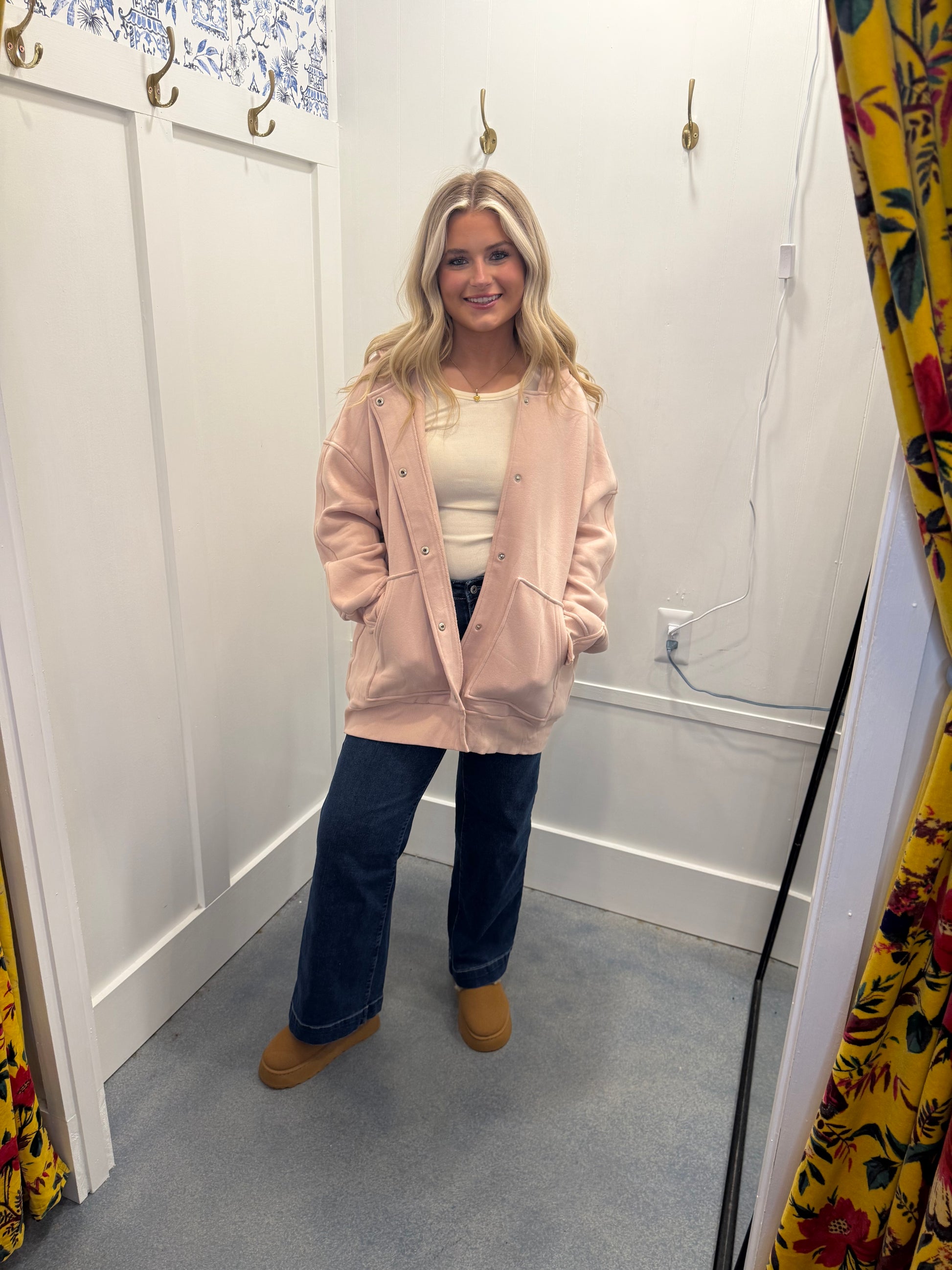 Solid Color Pocketed Button Up Loose Hoodie