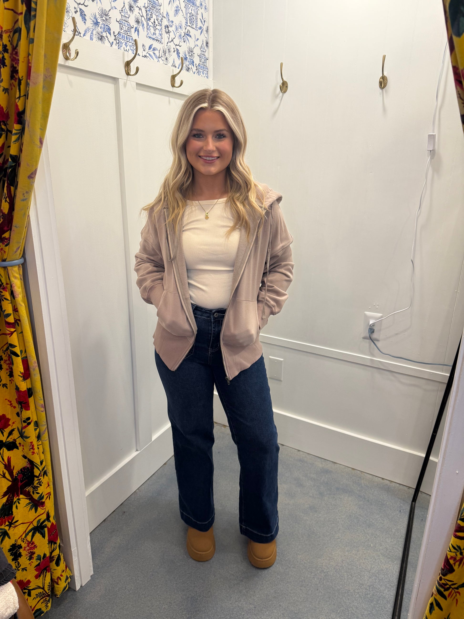 Mineral Wash Full Zip Drawstring Hoodie