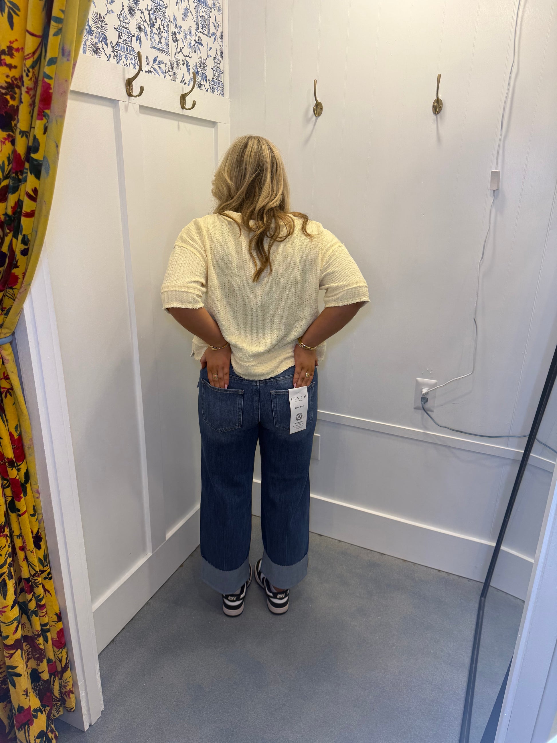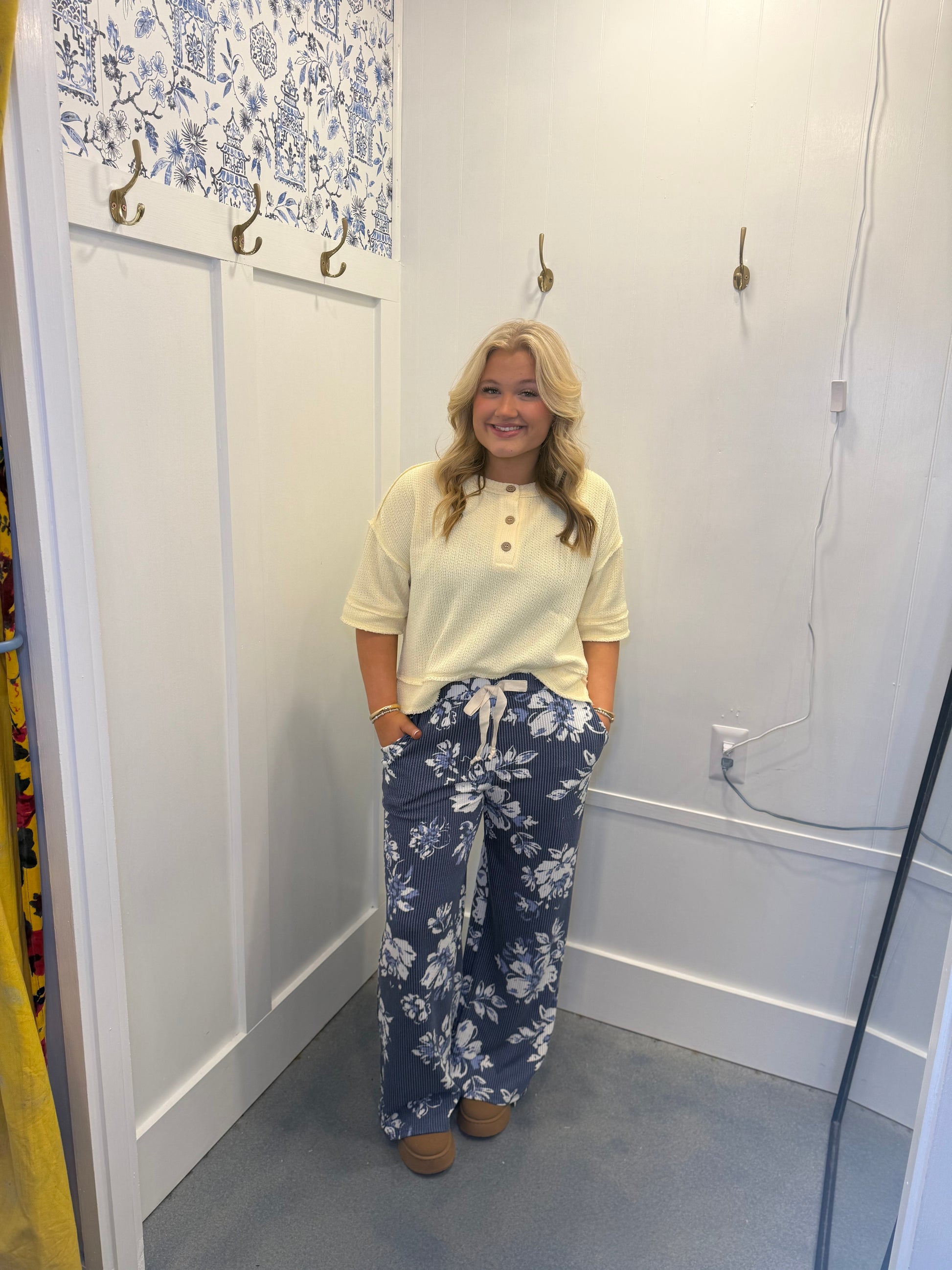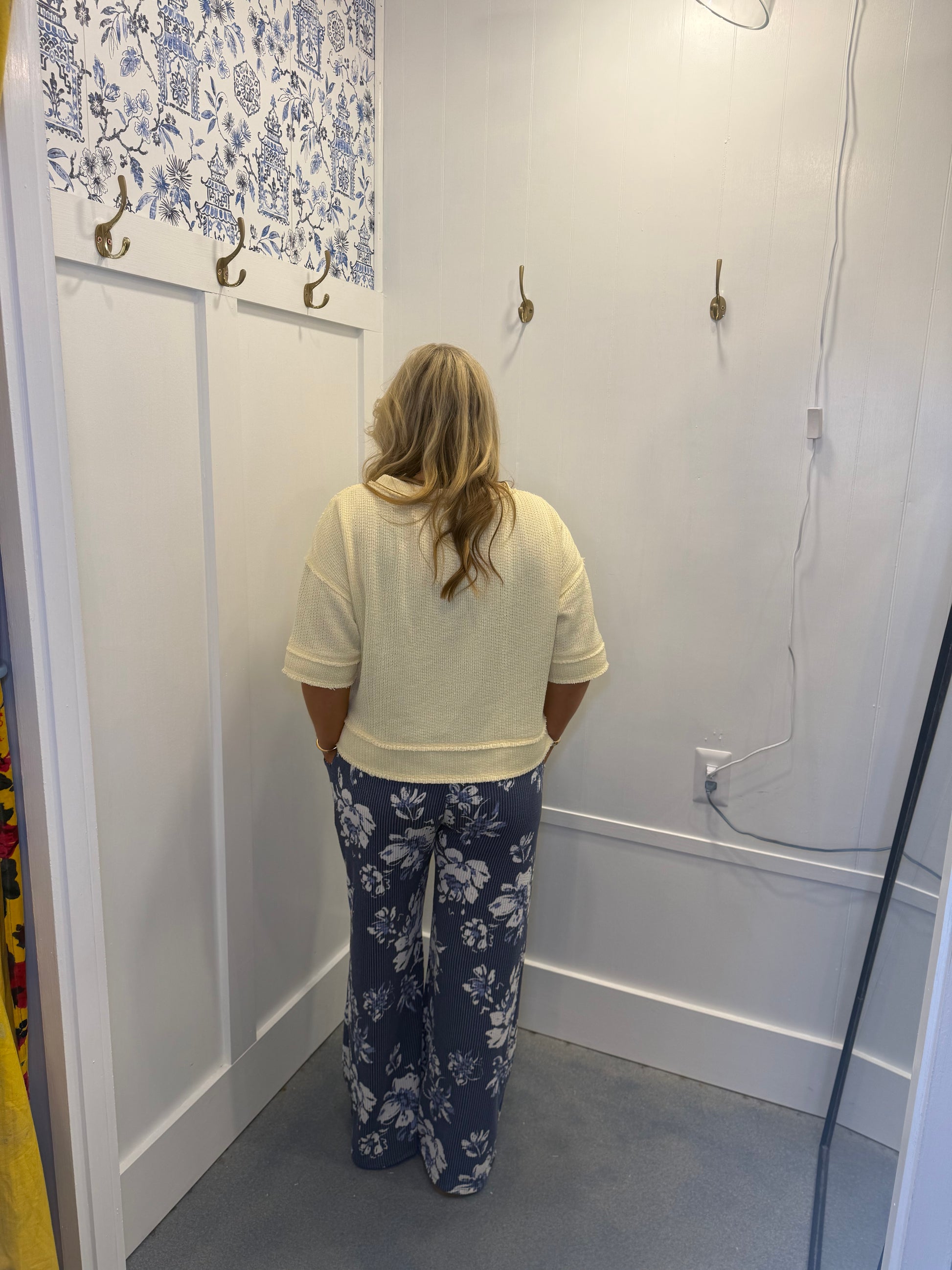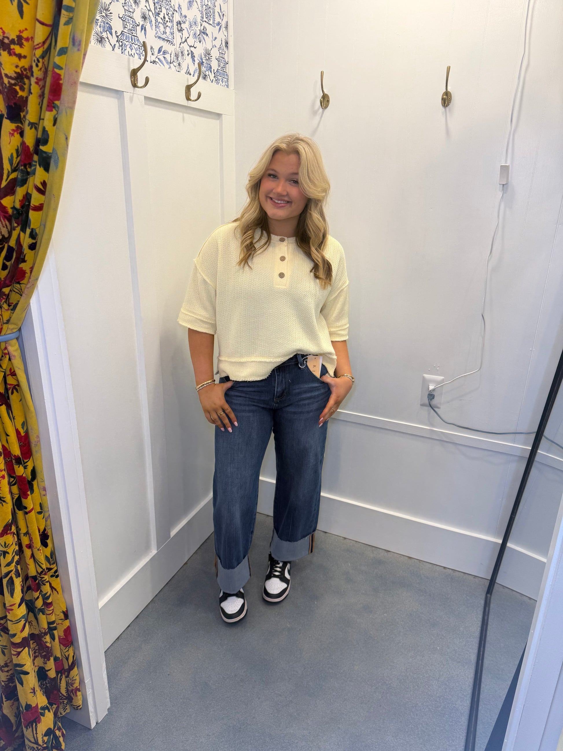 RAW EDGE HENLEY SHORT SLEEVE WAFFLE KNIT TOP