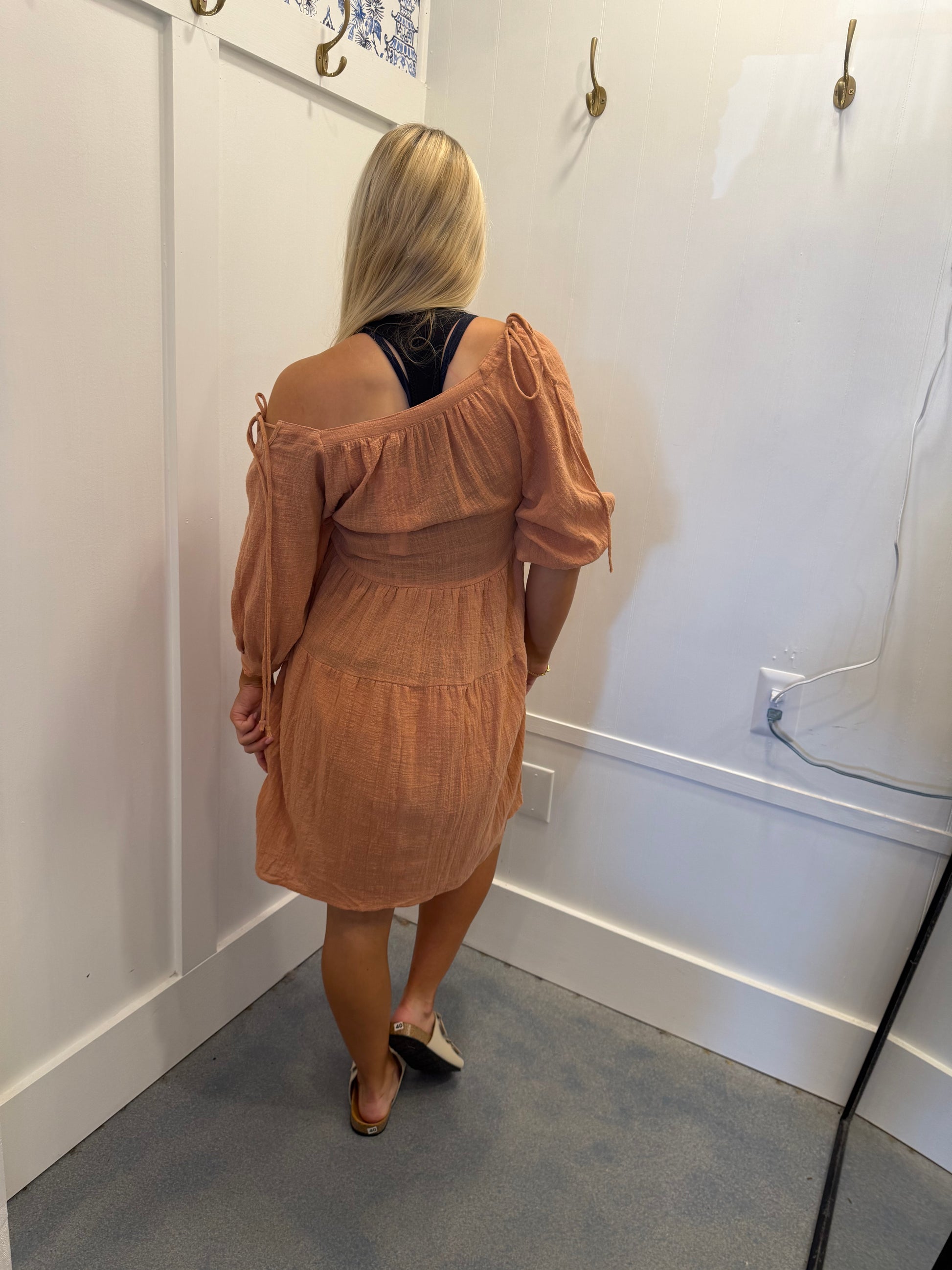 Square Neck Puff Sleeve Solid Babydoll Dress