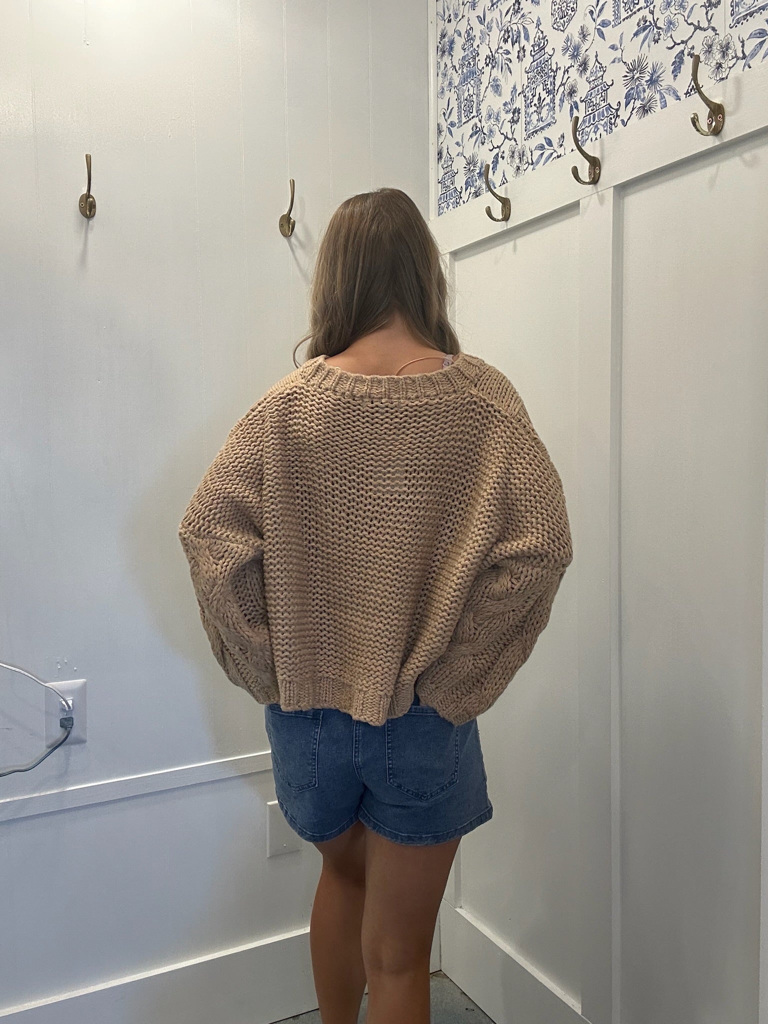 V Neck Cable Knit Oversized Sweater