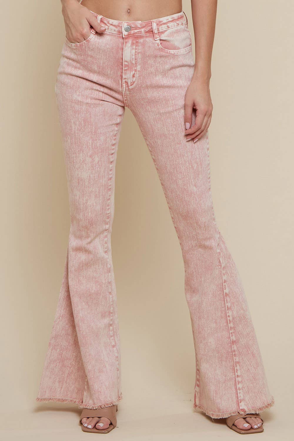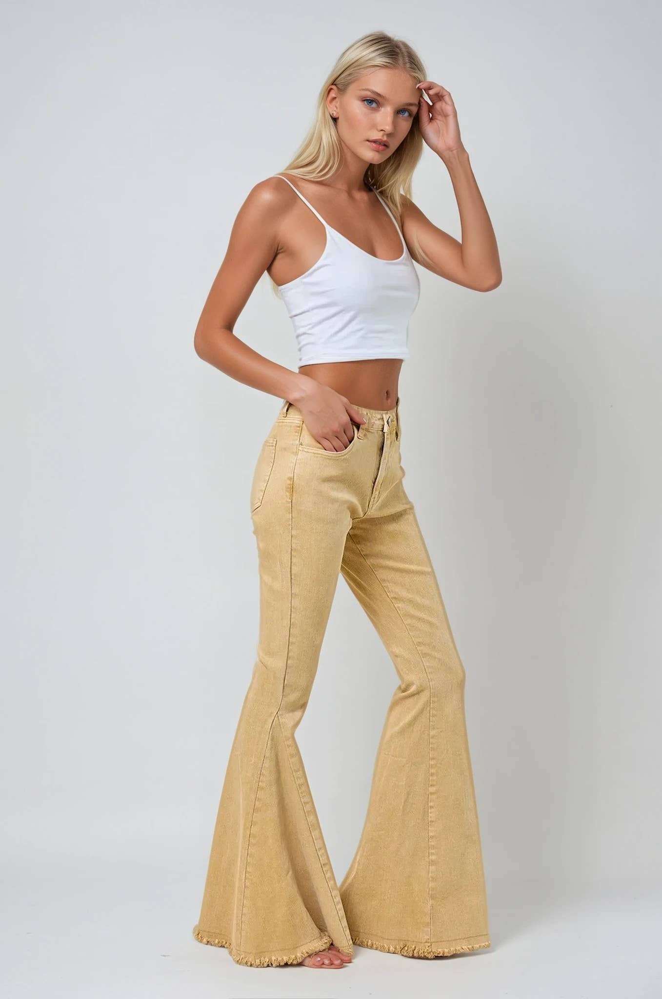 ACID WASHED 2 TONE BELLBOTTOM JEANS WITH GREAT STRETCH